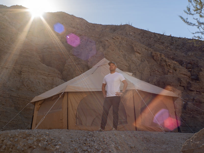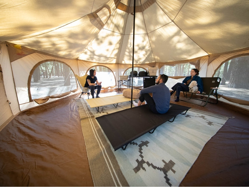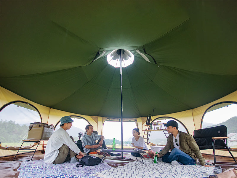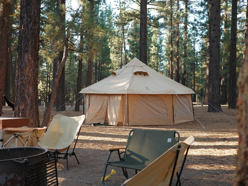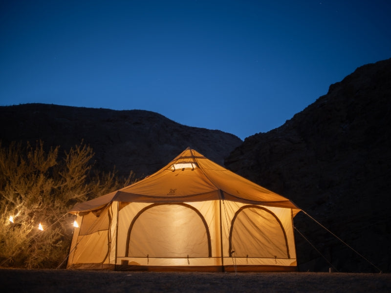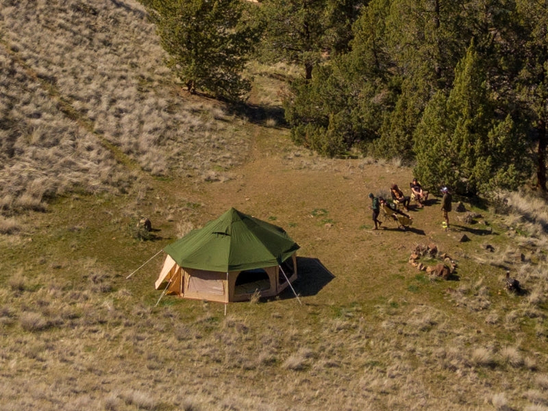 The Takenoko Bell Tent lets you create a glamping experience anywhere you go. The perfect tent for a group to relax, dine, and sleep, all under one versatile roof. Glorious Canvo™ roof allows the tent to breathe so it never gets muggy. All walls convert to mesh or wide open to let in the breeze. The included floor can be taken out to make the tent useful all day, drag a picnic table undercover and don’t worry about muddy boots when you have the floor removed. Install the sleeping chamber(sold separately) to divide the space into two separate rooms for privacy.