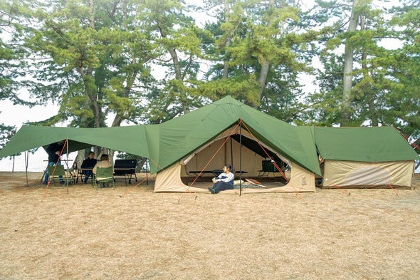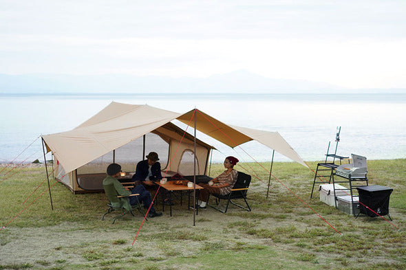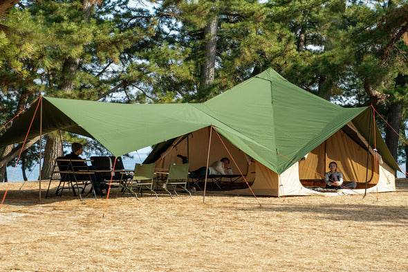 Extend your cozy living area by adding a covered porch to your Uchi or Tsuku tent. The Base Camp Awning is a designed to match the Uchi Tent or Tsuku Base Tent doors with a V shaped side that allows complete coverage where the awning and tent meet. The Base Camp Awning is a component of the Case Camp Bundle. Made from DOD's revolutionary Canvo™ fabric. Poles included.