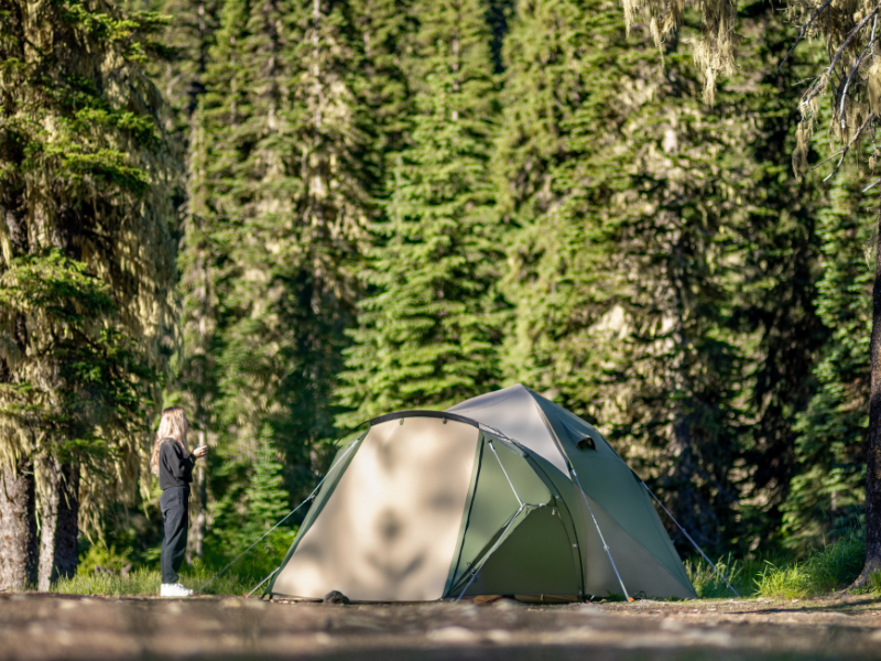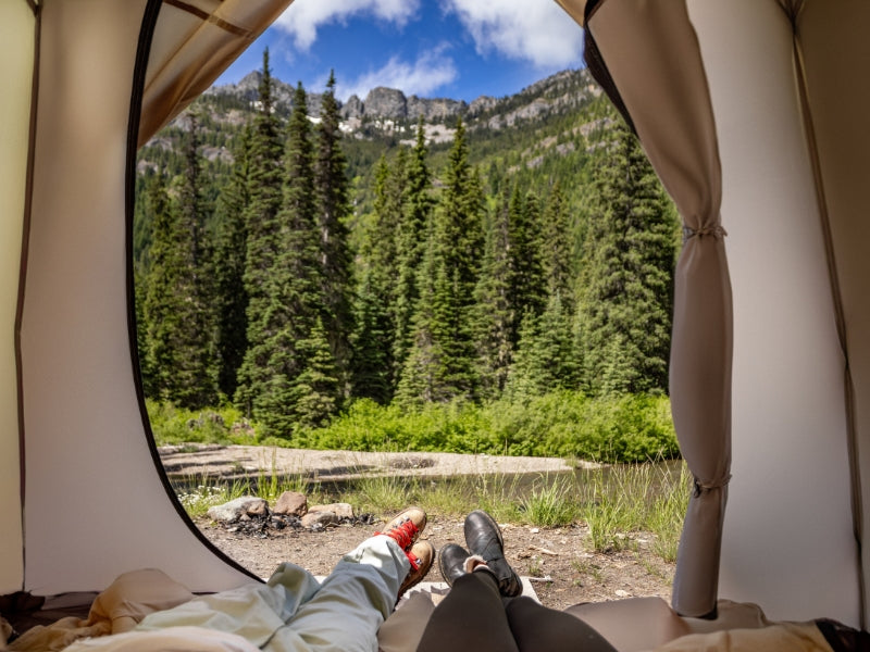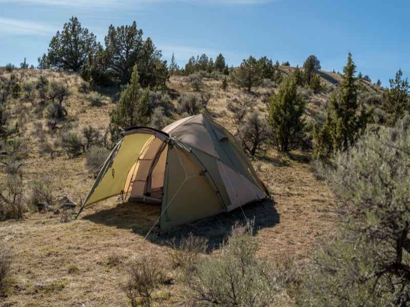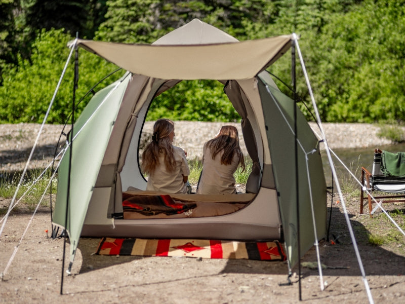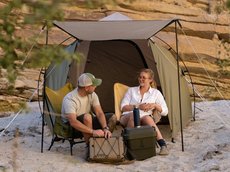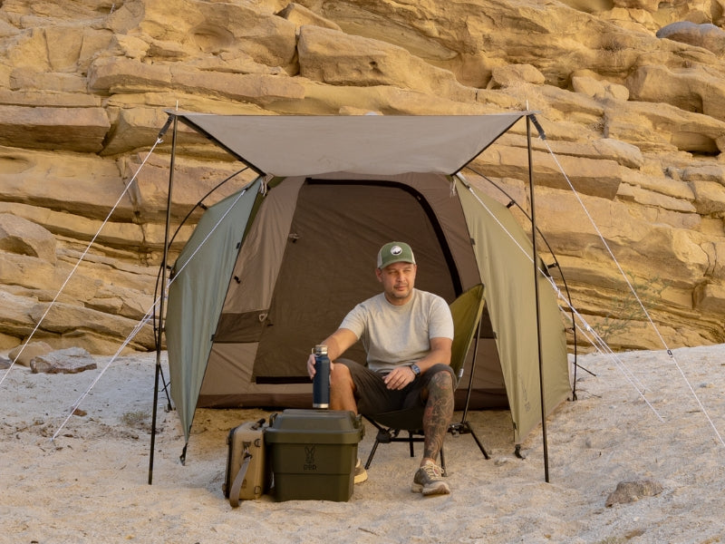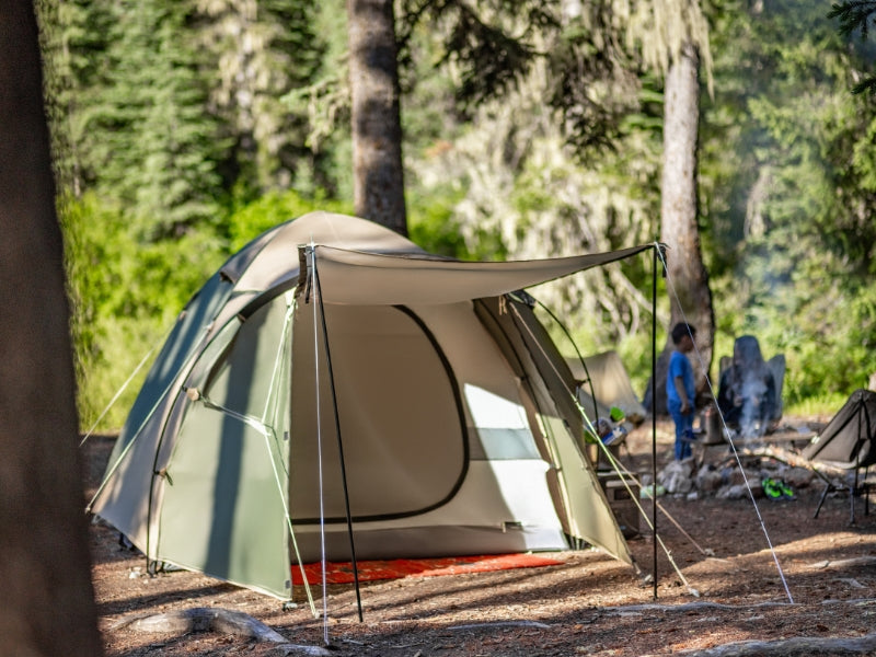 THE 1Pull Dome Tent combines ease of setup with spacious comfort, accommodating up to 3 people. Its 1Pull mechanism allows for hassle-free assembly. DOD’s muted color palette adds a touch of elegance to your camping experience. The tent includes a front chamber for additional space, making it perfect for both relaxation and storage. Large footprint awning extends living area and provides shade. (For a limited time, comes with Kiso Awning Poles).