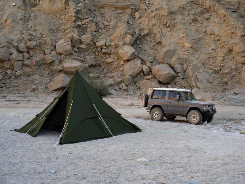 Introducing the Canvo™ RX Pyramid Tent (M), the more luxurious, Canvo™ version of the RX Pyramid Tent - a versatile and durable camping companion designed for the modern adventurer. Crafted with Canvo™, DOD's proprietary tent fabric, the tent's flysheet provides superior breathability and protection from the elements. The RX can be set up with the inner tent (included) or without the inner tent when you need a floorless space. The muted color pallet adds a touch of sophistication to your outdoor experience.