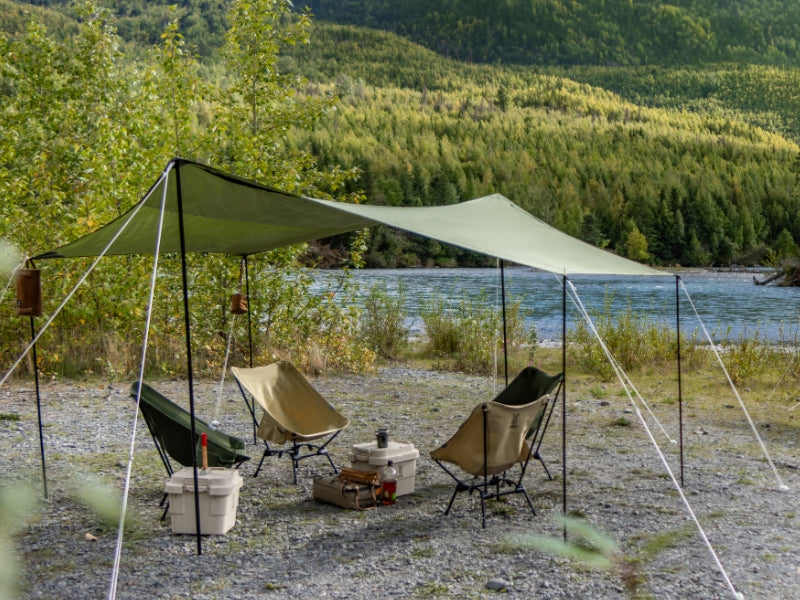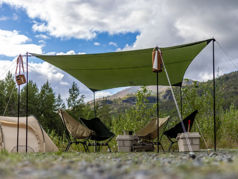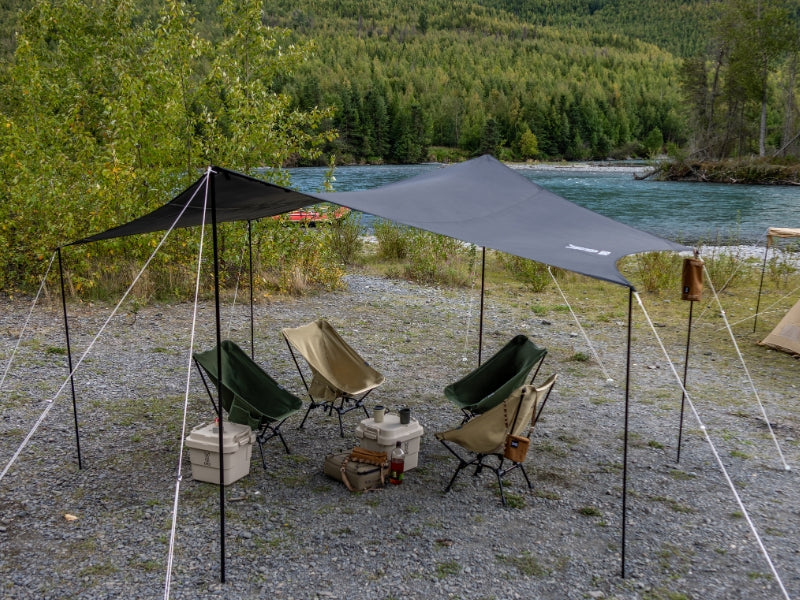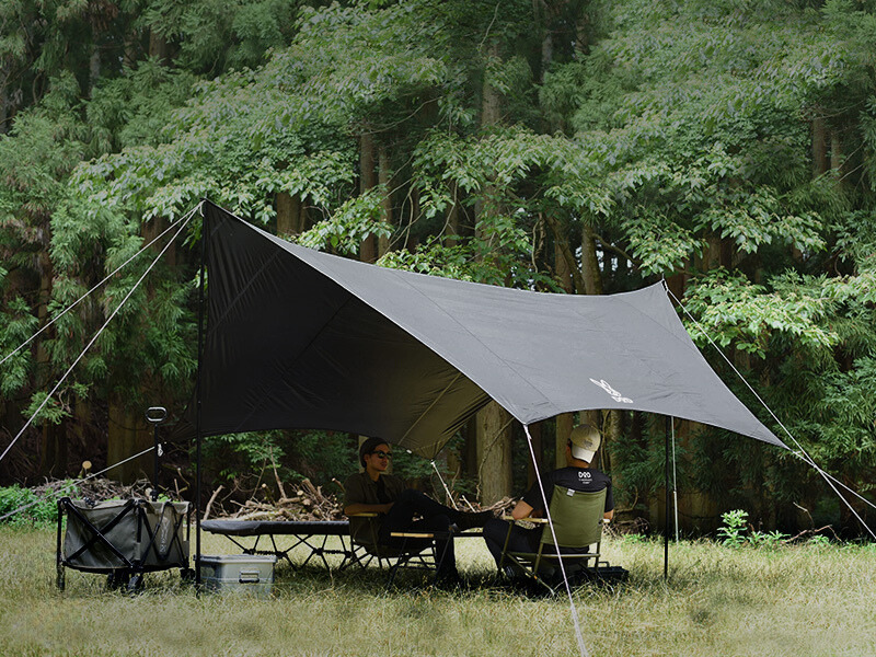 This tarp is very high quality and looks great in black. Kept me dry in three days of rain. The price is amazing considering it also contains the poles, extension belt, and stakes as most other companies sell those separately. This has everything you need in the bag to set up. Highly recommended.
