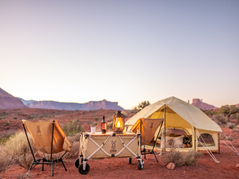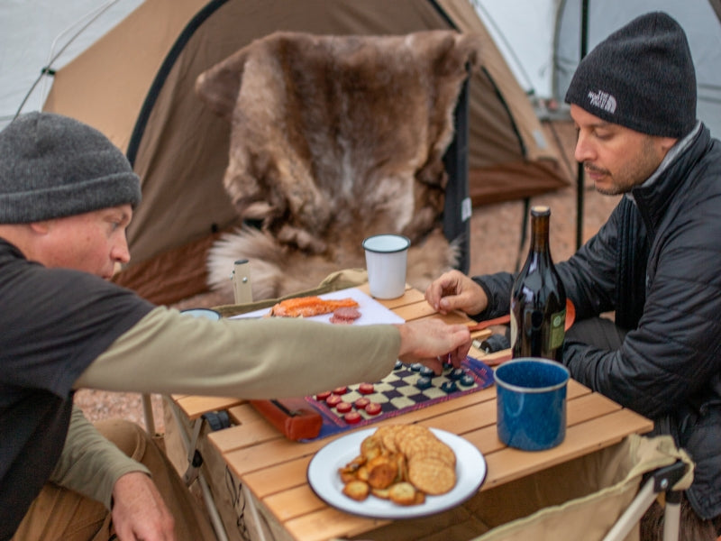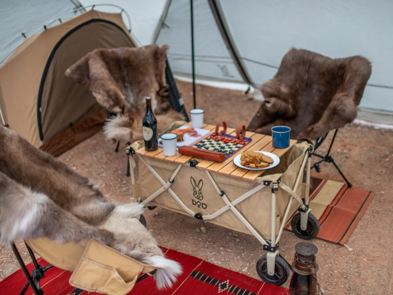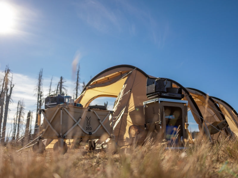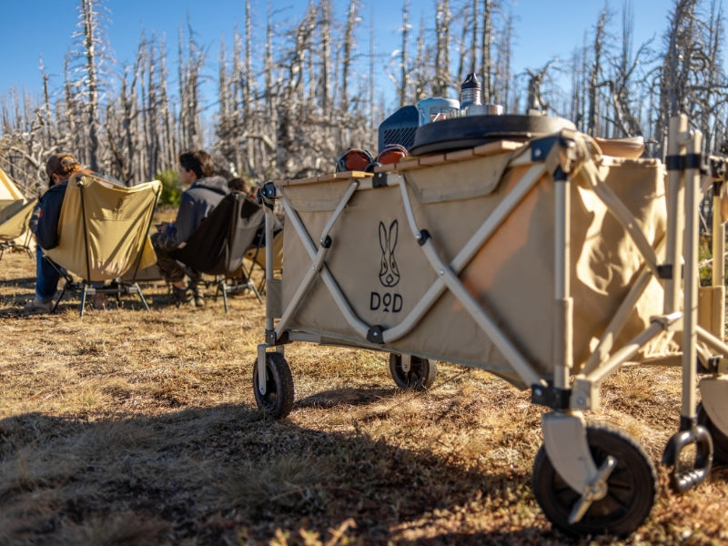 Our best selling bundle. Get all your gear into camp with the super sturdy Uma Wagon. Then pop on the folding table top and convert the wagon into a camp table - great for cocktails, meals, and games.