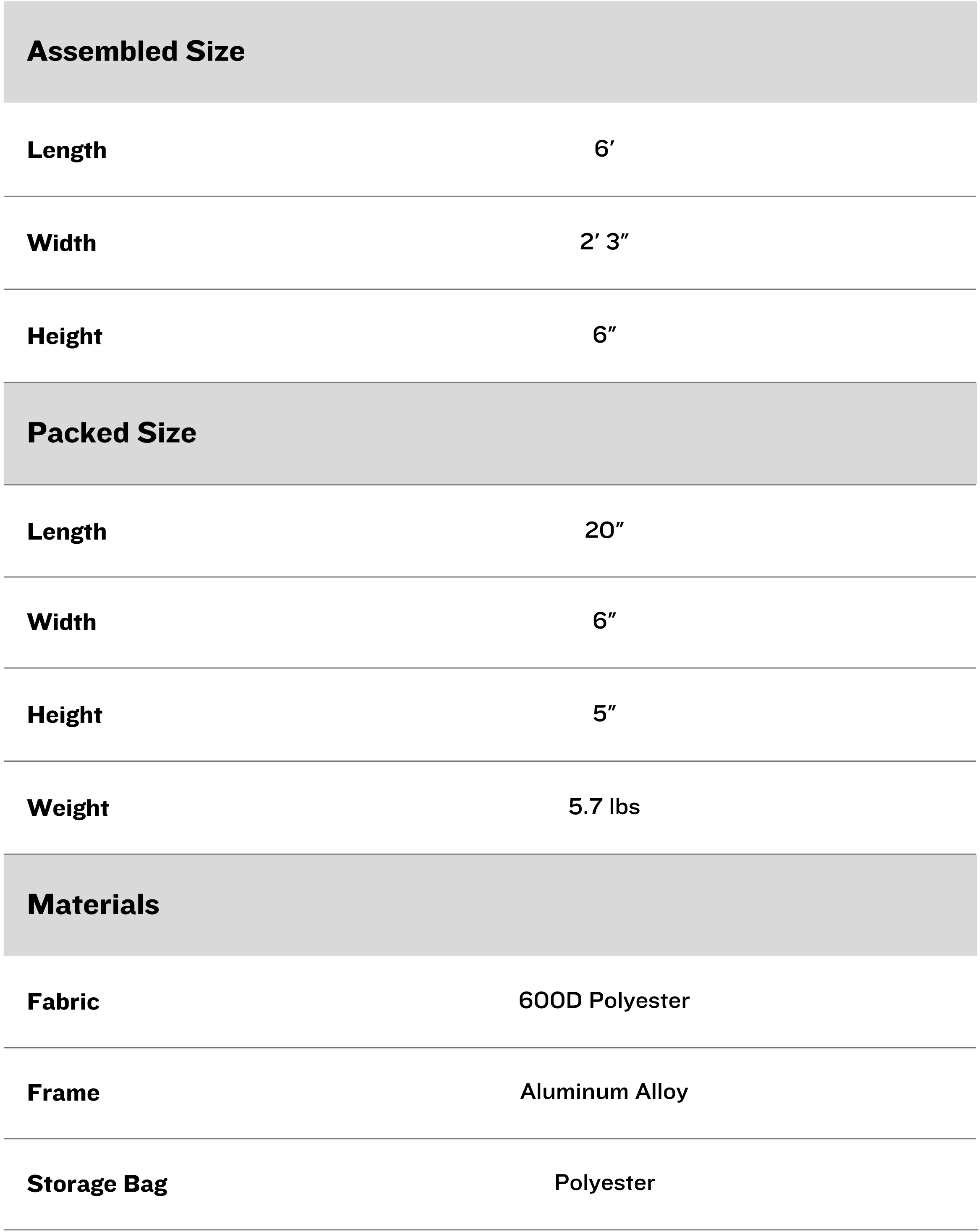 I wish it came in a larger size, enough to fit the XL inflatable pad. Same packable size and low to ground profile but big enough to fit two people would be awesome!