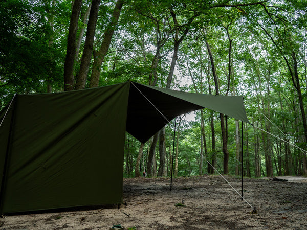 This tarp is very high quality and looks great in black. Kept me dry in three days of rain. The price is amazing considering it also contains the poles, extension belt, and stakes as most other companies sell those separately. This has everything you need in the bag to set up. Highly recommended.