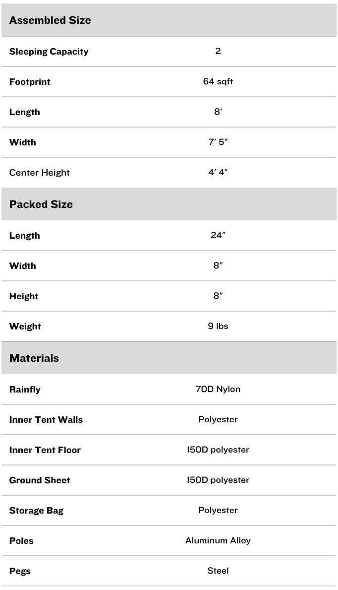 I wanted a larger tent that I could comfortably stand up in at 6’-2”. After doing a ton of research, I decided to purchase this tent. It’s a great size for my use. The build quality is 10/10. It’s takes me about 15 minutes to set it up and take it down. One thing that has been awesome, is the material of the tent isn’t as loud when there’s a breeze. Also, it packs down to a relatively small size. Definitely recommend if you’re looking for a larger tent.